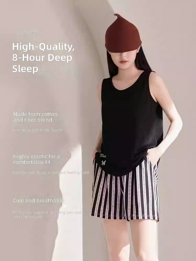 Men’s pure cotton summer new style short-sleeved vest and shorts pajamas casual wearable for summer loungewear plaid set