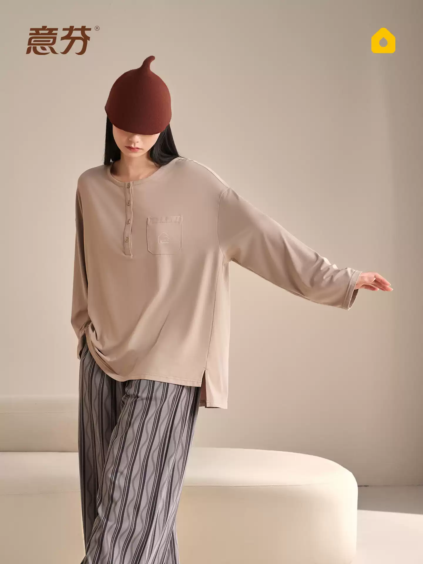 Women’s Spring/Summer High-End Modal Long-Sleeved Black Loungewear Three-Piece Set with Built-in Bra Pajamas and Padded Bra